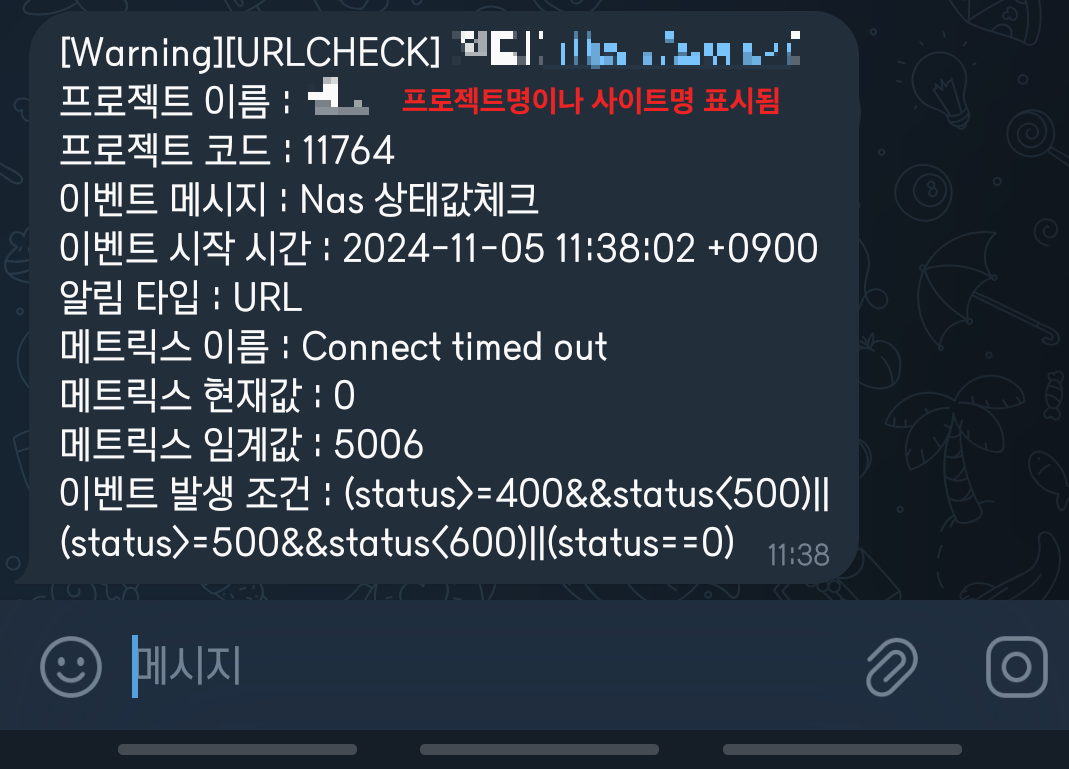 4. 실제 텔레그램으로 알람은 다음과 같이 오게된다.