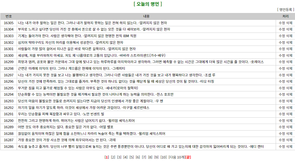 today_proverb.htm파일은 명언 관리 페이지라고 할수 있겠네요..