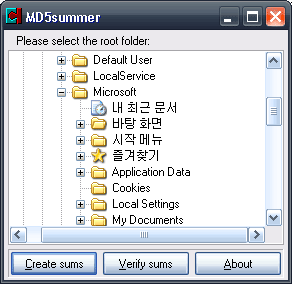 p.s: md5sum.exe 는 간혹가다 실행이 정상적으로 안되는 경우가 있으므로 md5summer.exe 를 사용하면 편리하다.